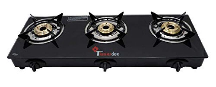 - Designed to accommodate big utensils easily. The body material is Mild steel, the top is toughened glass & the burners are made of brass
